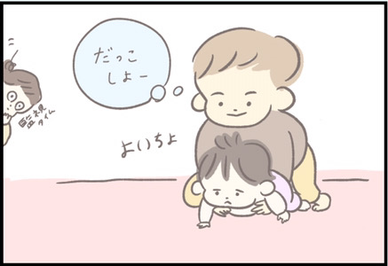 さて、今回は兄・ほにゅくんが、妹・ねむちゃんを抱っこしようと持ち上げたところ、重くて諦めるというエピソードでした。ほにゅくんがひょいと持ち上げようとしたときはヒヤッとしましたが、つぶみさんがしっかりと「監視タイム」と目を配らせているのはさすがですね。