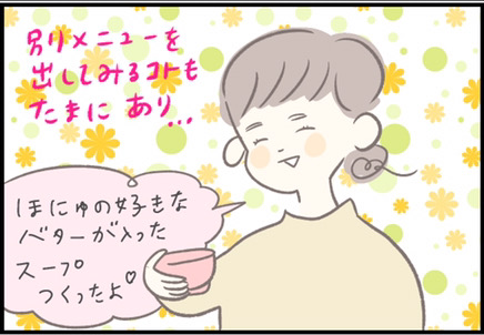 ところで、子どもの食事がワンパターンになってしまう…という悩みを持つ方も多いのではないでしょうか。つぶみさんも、ほにゅくんが好む新しいメニューを日々考えているのですね。ママの努力にも拍手です!