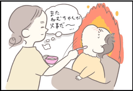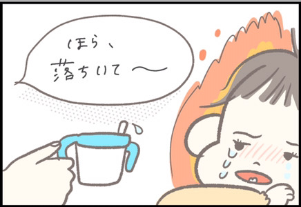 つぶみさんの長女・ねむちゃんは生後10ヶ月で離乳食真っ只中。なぜか離乳食中に突然泣き出すことがあるようです。しかし、お水をちょっと飲むと落ち着くとか。ねむちゃんの機嫌の変化に「あるある」と共感される方も多いのではないでしょうか。
