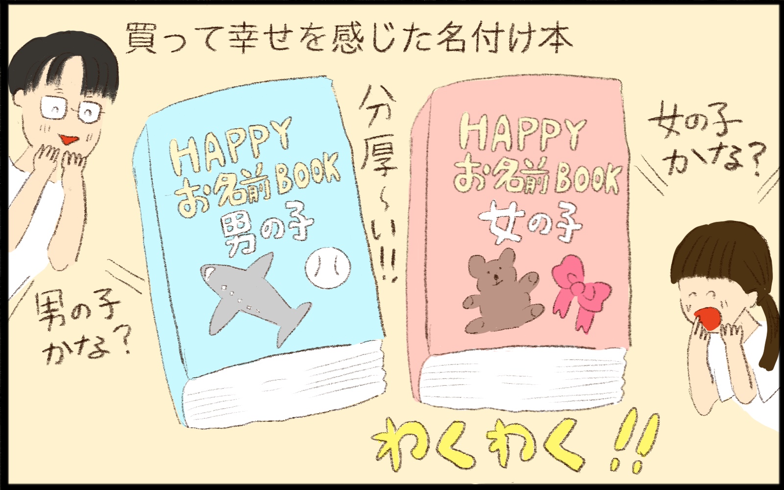 名付けの本はまだ性別が判明しない妊娠週数のころに購入したため、男女とも揃えました。(後々考えると、これが良い選択だったと思います!)