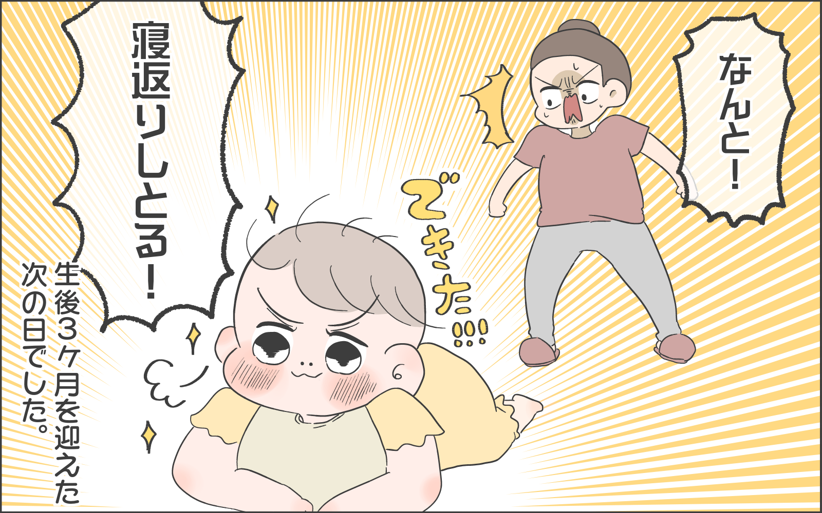 しかしこまめちゃんは、生後3ヶ月になった次の日に、なんと寝返りができるように。それからは、寝返りしては戻してあげることを繰り返す毎日になりました。