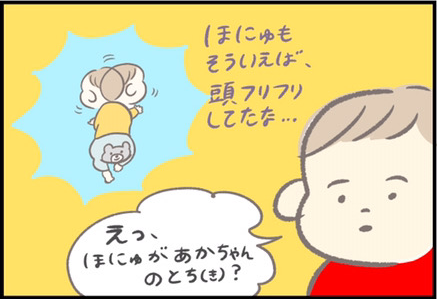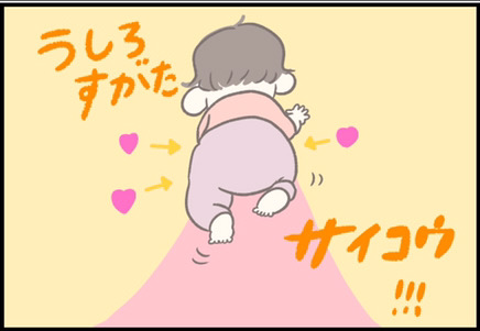 つぶみさんの長女・ねむちゃんはハイハイが上手な時期。いろいろな場所に興味を持ち、楽しいときや嬉しいときは首をフリフリしながらハイハイをしているようですね。長男・ほにゅくんも同じようにハイハイをしていたは、とてもかわいらしいエピソードです。