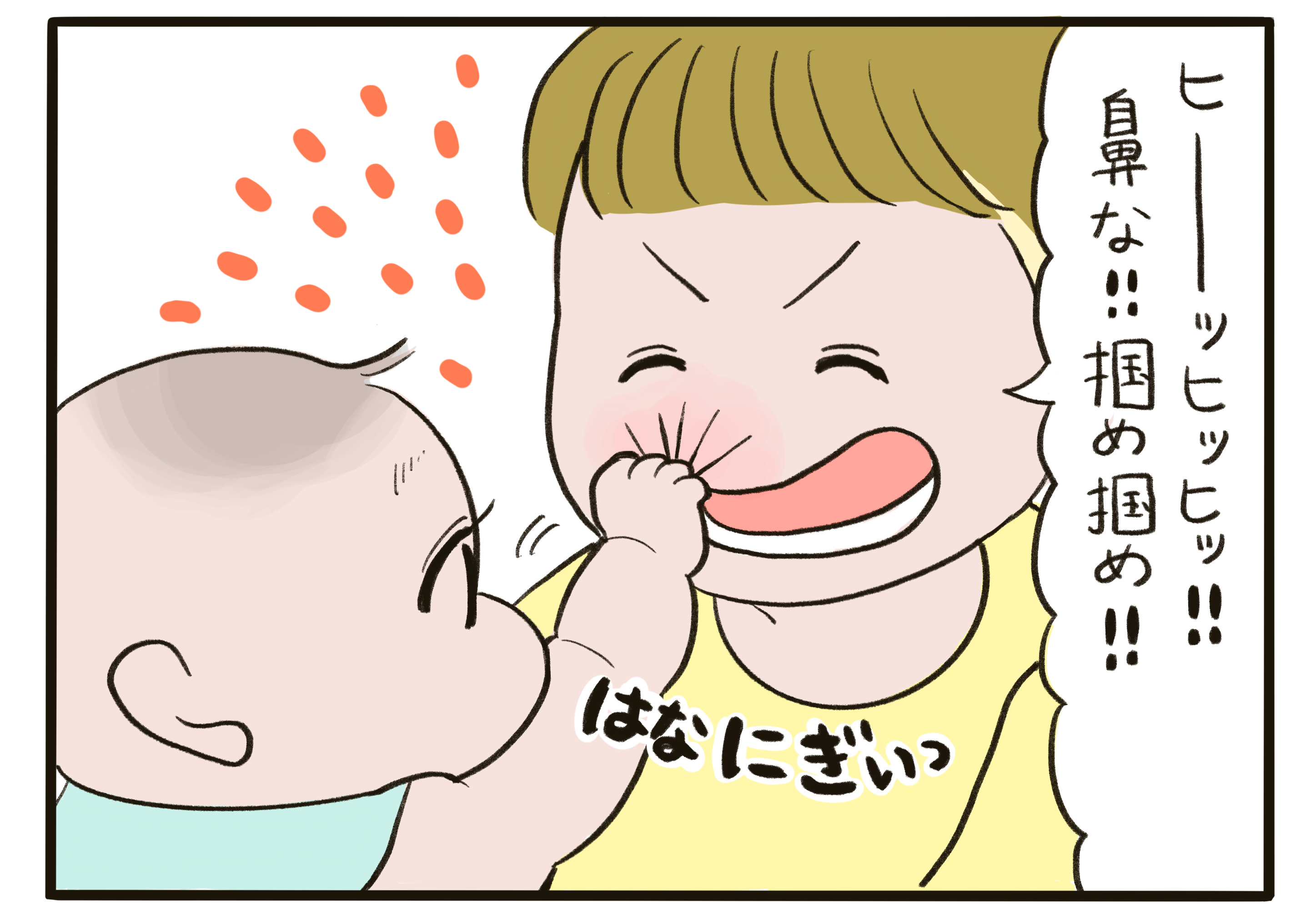 ママの顔を握られ続け、慣れてきたころ…鼻と口の両方握られると、さすがに息の根を止めに来たとしか思えません。はるくんの方が一枚上手だったのでしょうか。もしかしたら、ギャーと叫ぶママの反応が面白かったのかもしれませんね。