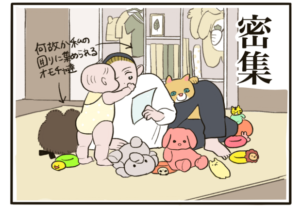 ほかほか命さんのご家庭も例外ではないようですね。ほかほか命さんの息子・はるくんが寄ってきてママを触り…はるくんが集めたおもちゃがほかほか命さんを囲み…そして、泣き声がご近所に響き渡らないよう窓を閉め…