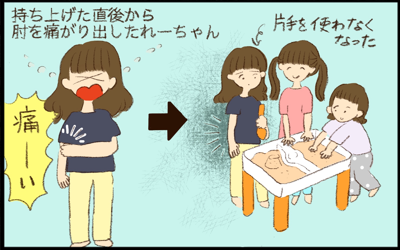 今回は、次女れーちゃんが肘内障(ちゅうないしょう)になった話をします。
