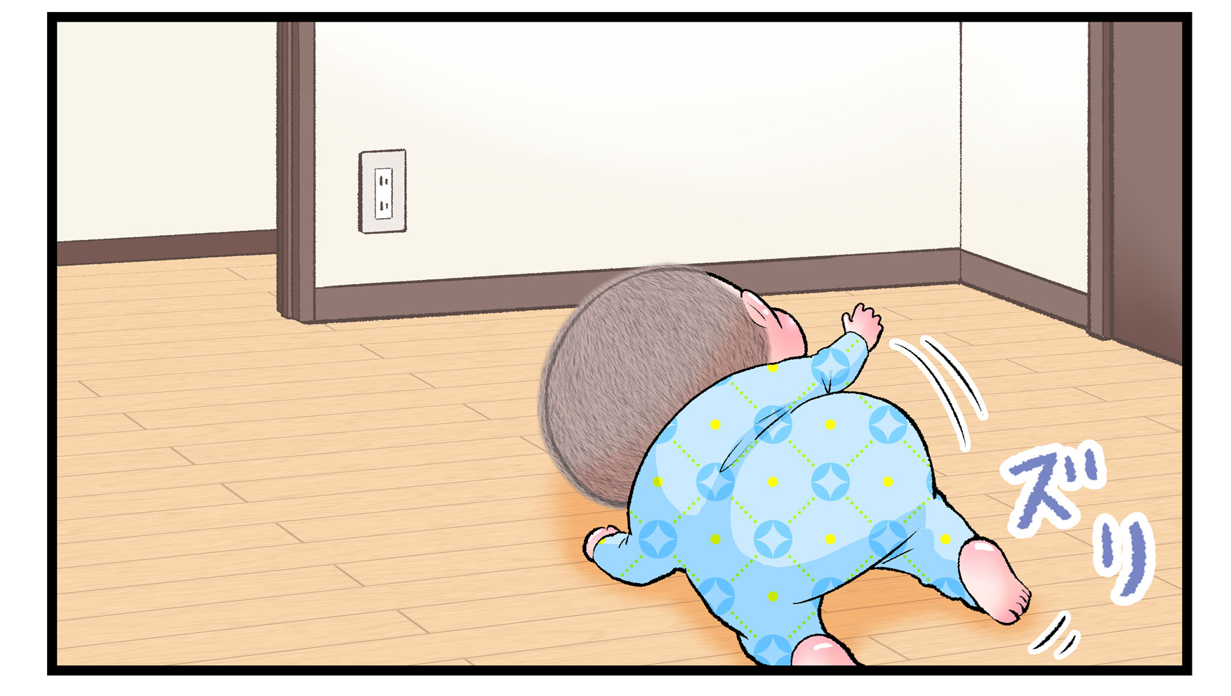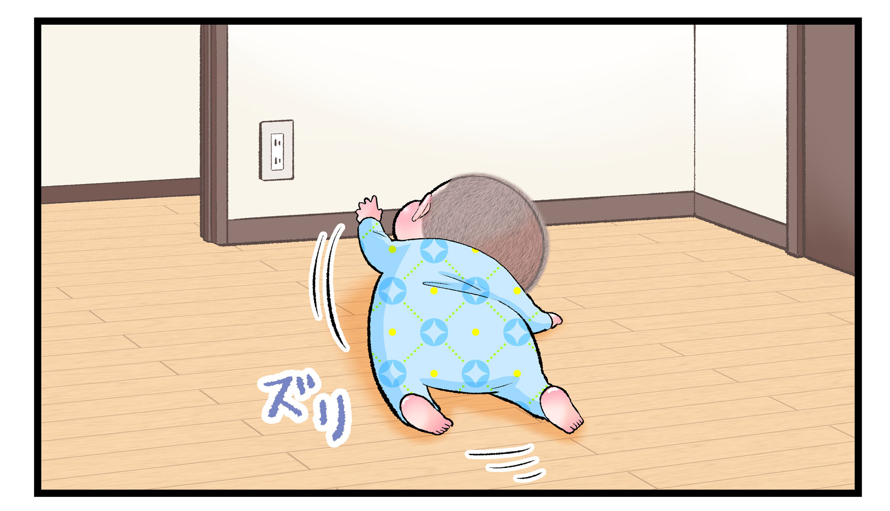 にくきゅうぷにおさんの長男・ぷにおくんが0歳8ヶ月頃のお話。ずりずりと身体を引きずりながら向かった先はコンセント。赤ちゃんが指を入れたがってヒヤッとした経験をした方も多いのではないでしょうか。にくきゅうぷにおさんも例外ではありませんでした。すぐにコンセントカバーを購入しに走ったようです。