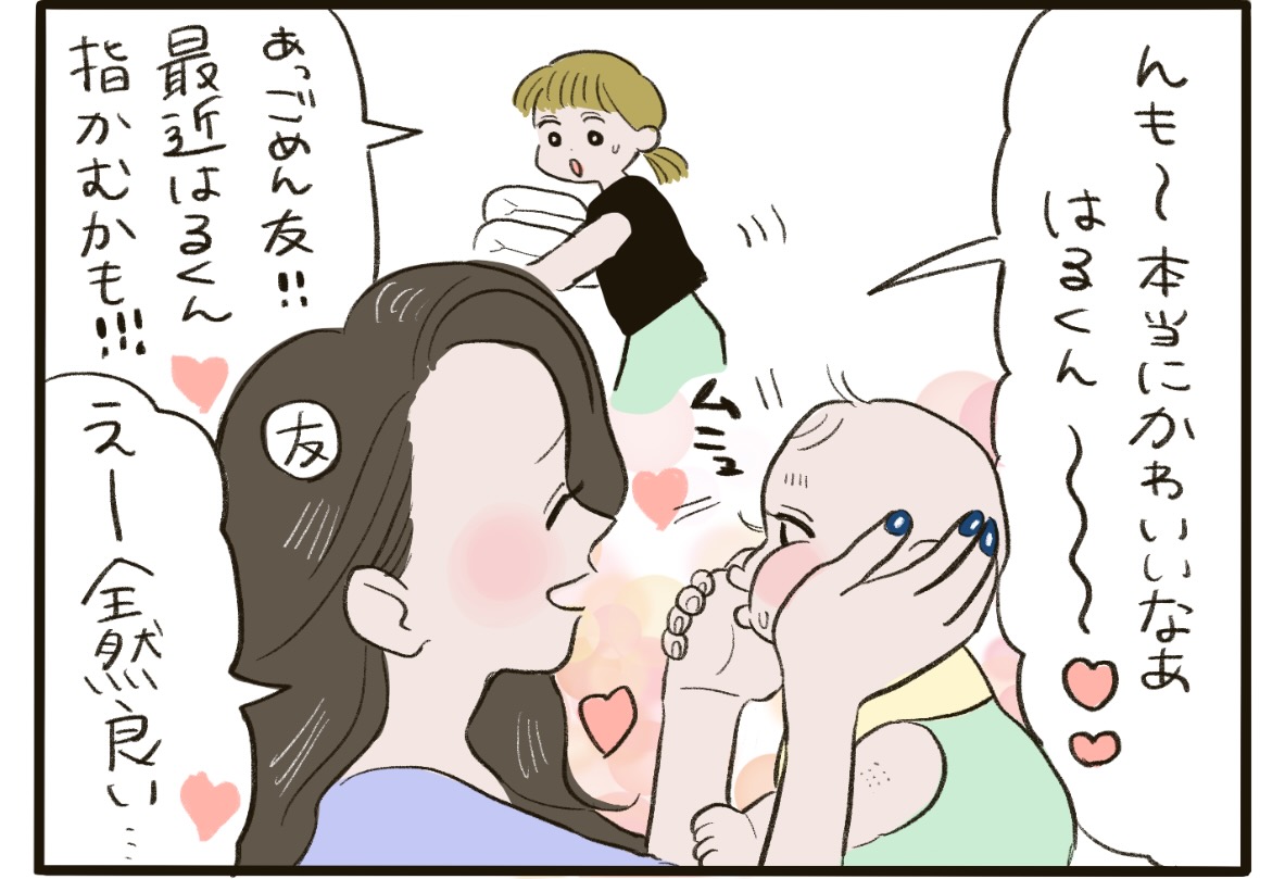 Instagramで話題沸騰!イラストレーター・ほかほか命さんのままのてオリジナル連載です。推しである息子・はるくんに夢中な毎日を過ごしているほかほか命さん。今回は、お姉さんと友人が赤ちゃんと触れ合う様子をお届けします。徐々に冷静さを失っていくおふたりの表情の変化に、ぜひご注目ください。