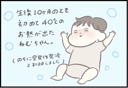 1歳になるまでに多くの赤ちゃんが発症するといわれている突発性発疹。40℃近い高熱がつづくのでママとパパは慌ててしまいますよね。つぶみさんも、長女・ねむちゃんの初めての高熱に心配するのと同時に、次々に繰り出される「初めて」に驚いてしまったようです。