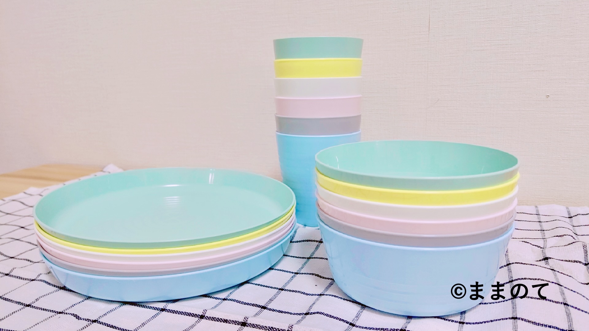 ボウル、プレート、コップでカラフルな色合いにしたり、お気に入りのカラーで統一させたりといろいろな使い方が楽しめます。6ピース入りなので食器としてだけでなく、料理をする際のボウル代わりや食材置きにも使えてとても便利ですよ。