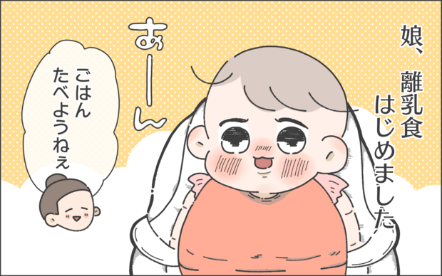 育児マンガ家おかめ(@omame_okame)さんの日常の出来事や奮闘をマンガでお届けします。娘のこまめちゃんがいよいよ離乳食をスタートしたそうです。毎日いろいろなものを食べているこまめちゃん。その食べたときの表情に注目です!