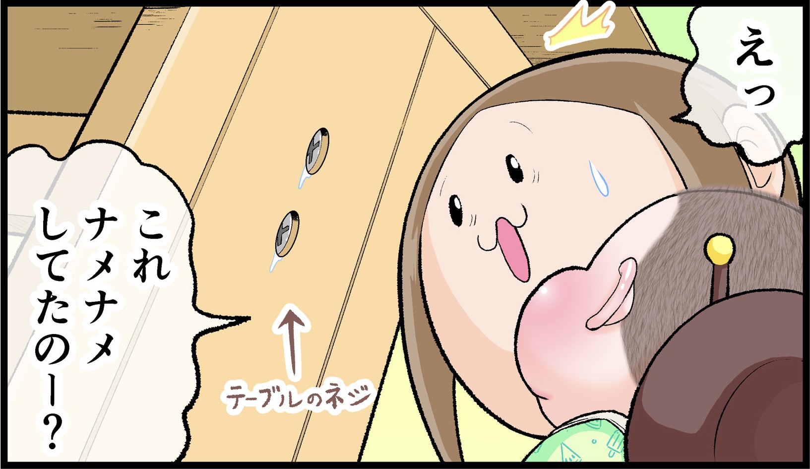 にくきゅうぷにおさんの長男・ぷにおくんのお気に入りはテーブルの側面に取り付けられたネジだったそうです。「妖怪ネジ舐め小僧」というネーミングセンスがとっても可愛らしいですね。