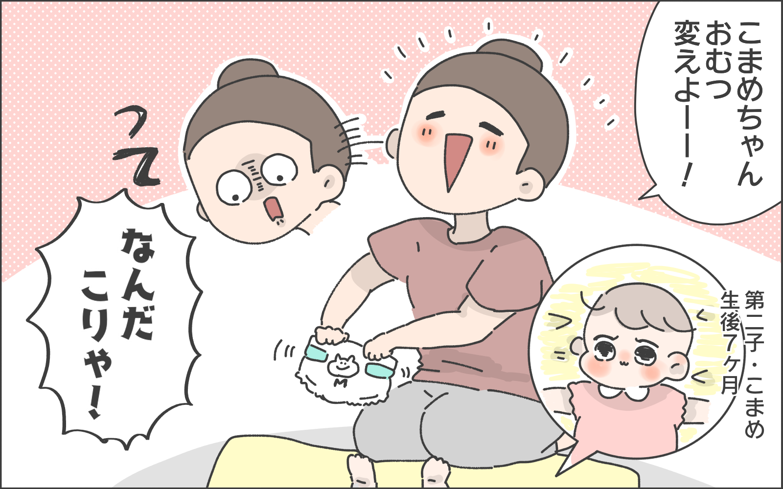 育児マンガ家おかめ(@omame_okame)さんの日常の出来事や奮闘をマンガでお届けします。ある日、娘のこまめちゃんのおむつ替えをしようとしていたおかめさん。ふとあることに気が付きます。しかしその後も同じようなことが起こります。なぜだろうと考えるおかめさんでしたが、困った末に思いついたアイデアが…。