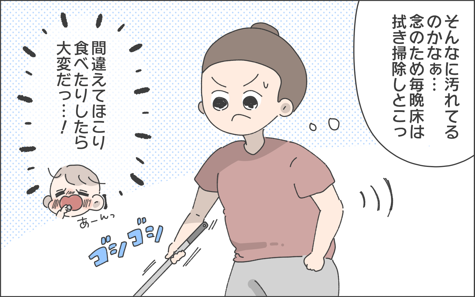 そのため入念に床掃除をし、身体にほこりがつかないよう、食べてしまわないよう気をつけることに。しかし、それでも膝は汚れてしまう。なぜでしょう…。