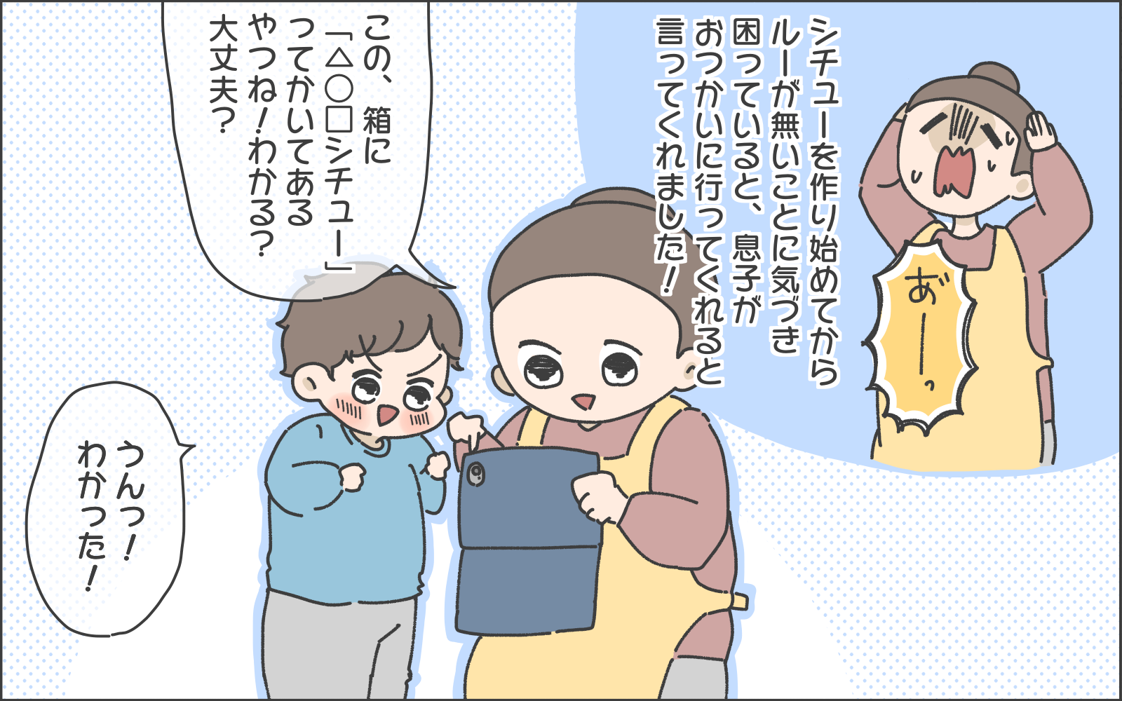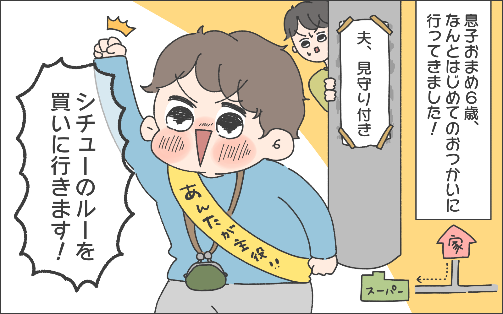 ある日、夕飯の支度中にシチューのルーがないことに気付いたたおかめさん。なんと頼もしいことに、6歳の長男おまめくんがおつかいに行くと言ってくれたそうです。