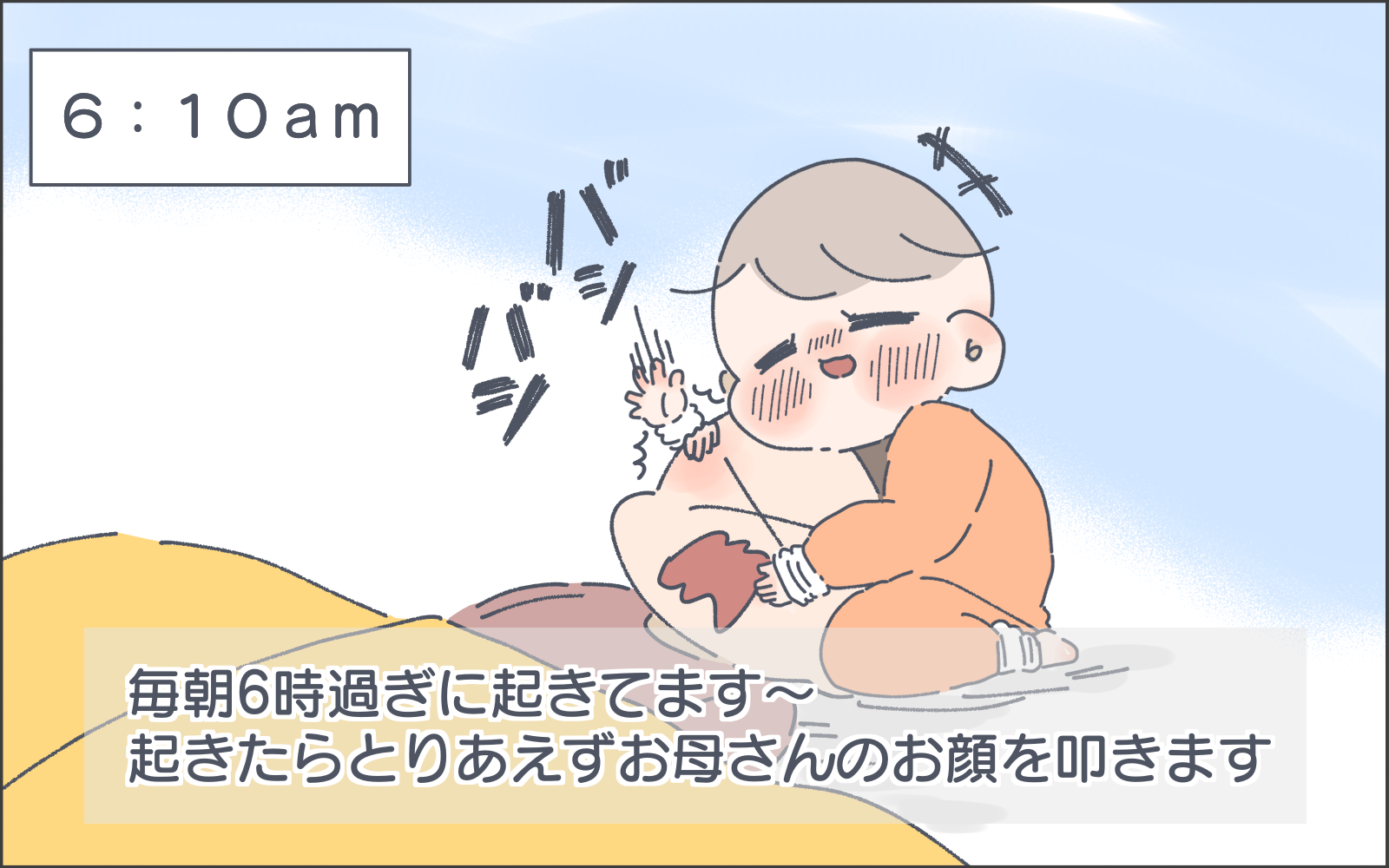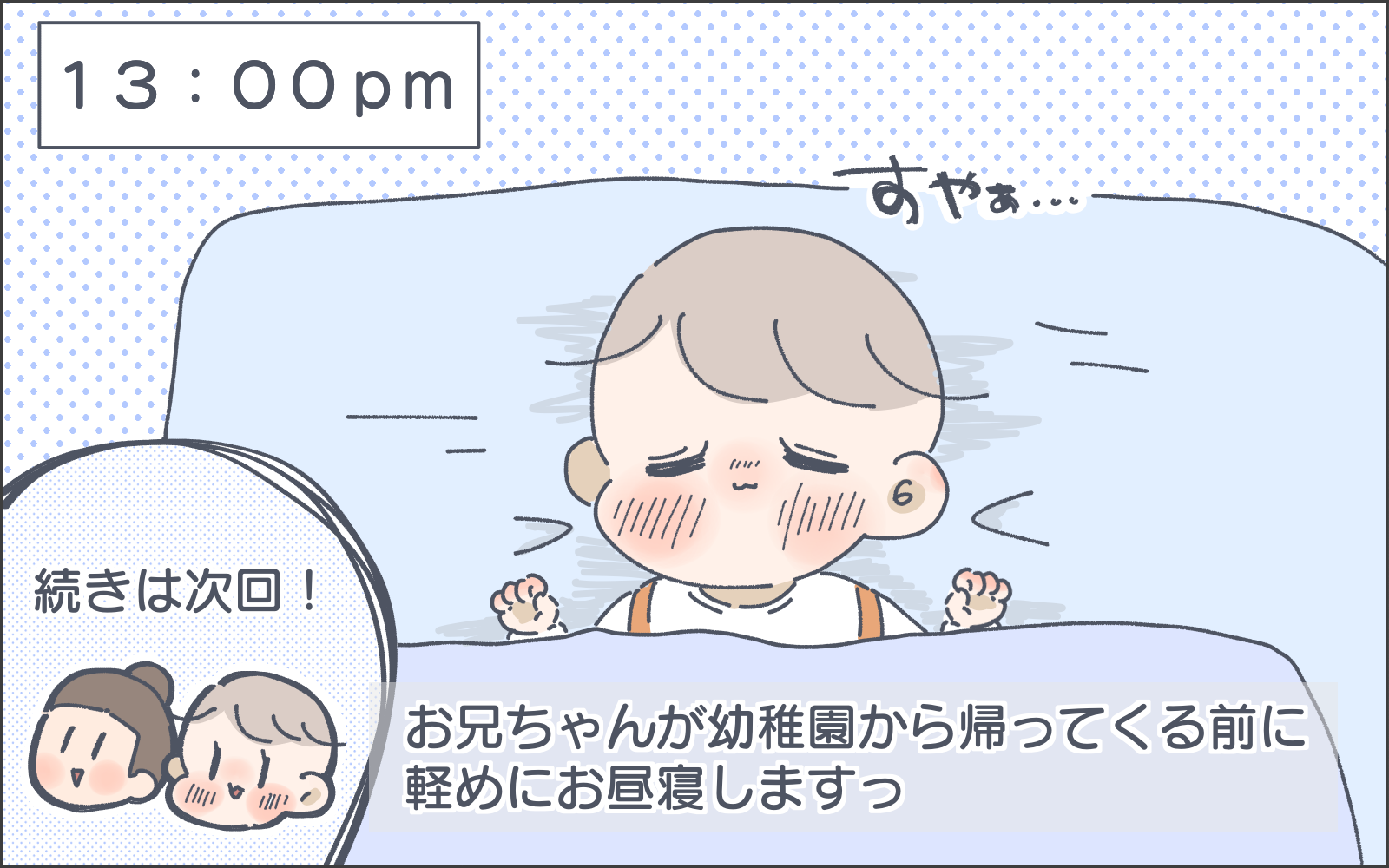 育児マンガ家おかめ(@omame_okame)さんの日常の出来事や奮闘をマンガでお届けします。第2子のこまめちゃんは生後8ヶ月になりました。離乳食もはじまり、お昼寝の時間も整い、1日のリズムが徐々に決まってきたようです。そんなこまめちゃんの、1日のルーティーンをお届けします!