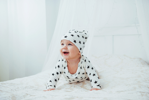 サイズは身長45cmから5~10cm刻みで展開し、新生児から使えます。赤ちゃんの成長は早く、あっという間に大きくなります。成長のスピードには個人差があるものの、出生から1ヶ月で約4cm、1歳までは1ヶ月ごとに約1~2cmずつのびていく赤ちゃんが多いようです(※)。そのため、GAPベビーの小刻みなサイズ展開が重宝します。