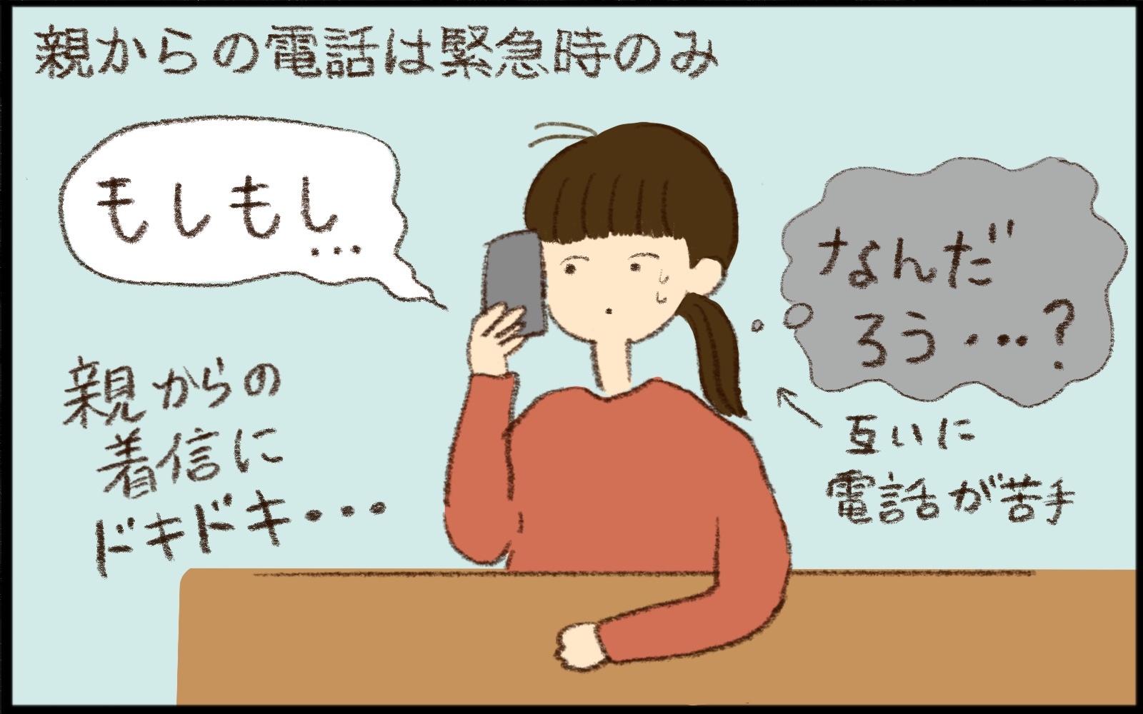 親から連絡が来ることはほとんどありません。電話がかかってくるのは緊急のときのみなので、親から着信があると「なにかトラブルがあったのでは」と身構えてしまうほどです。