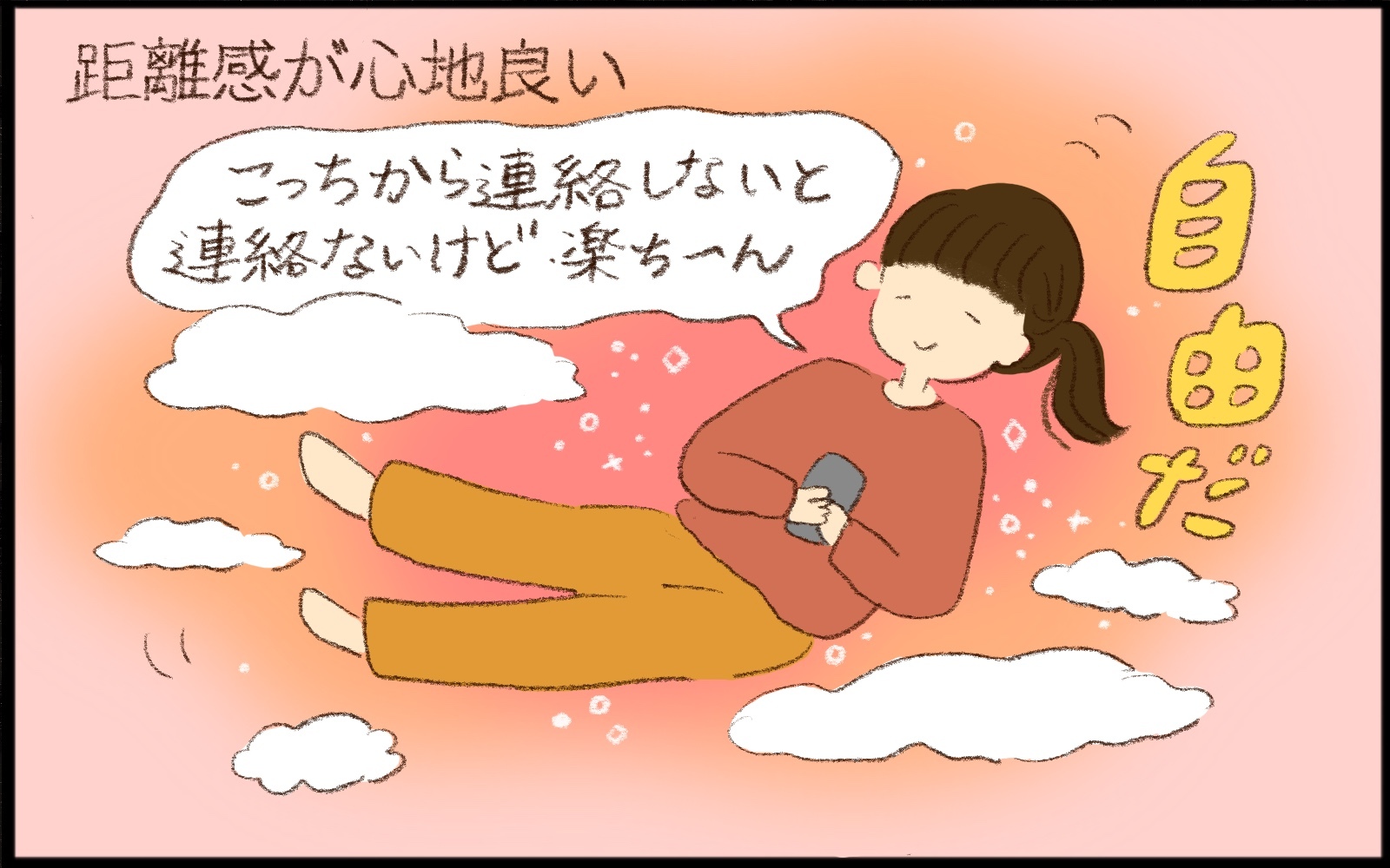 SNSなどで友人とその親の関係性を見ていると、実家が遠方にあったり、逆に親との距離感が近かったりとその家庭でさまざまですね。親とよく会ったりでかけたり、連絡を取り合ったりしている友人を見て羨ましく思うこともありますが、うちはうち。ゆるくて干渉されないものの、必要なときには手を差し伸べてくれる親との関係性がとても心地良いです。