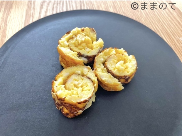 伊達巻はフライパンの上で巻かずにいったんまな板などに広げたラップに置いてから巻くと、簡単にきれいに仕上がります。また、熱いままカットせず、冷ましてからカットすると形も崩れません。赤ちゃんが1歳くらいになったら、豆腐の代わりにはんぺんを使っても良いでしょう。