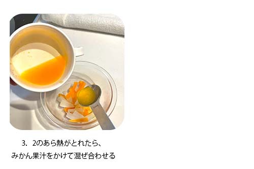 3.2のあら熱がとれたら、みかん果汁をかけて混ぜ合わせる