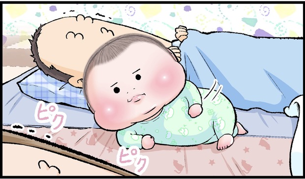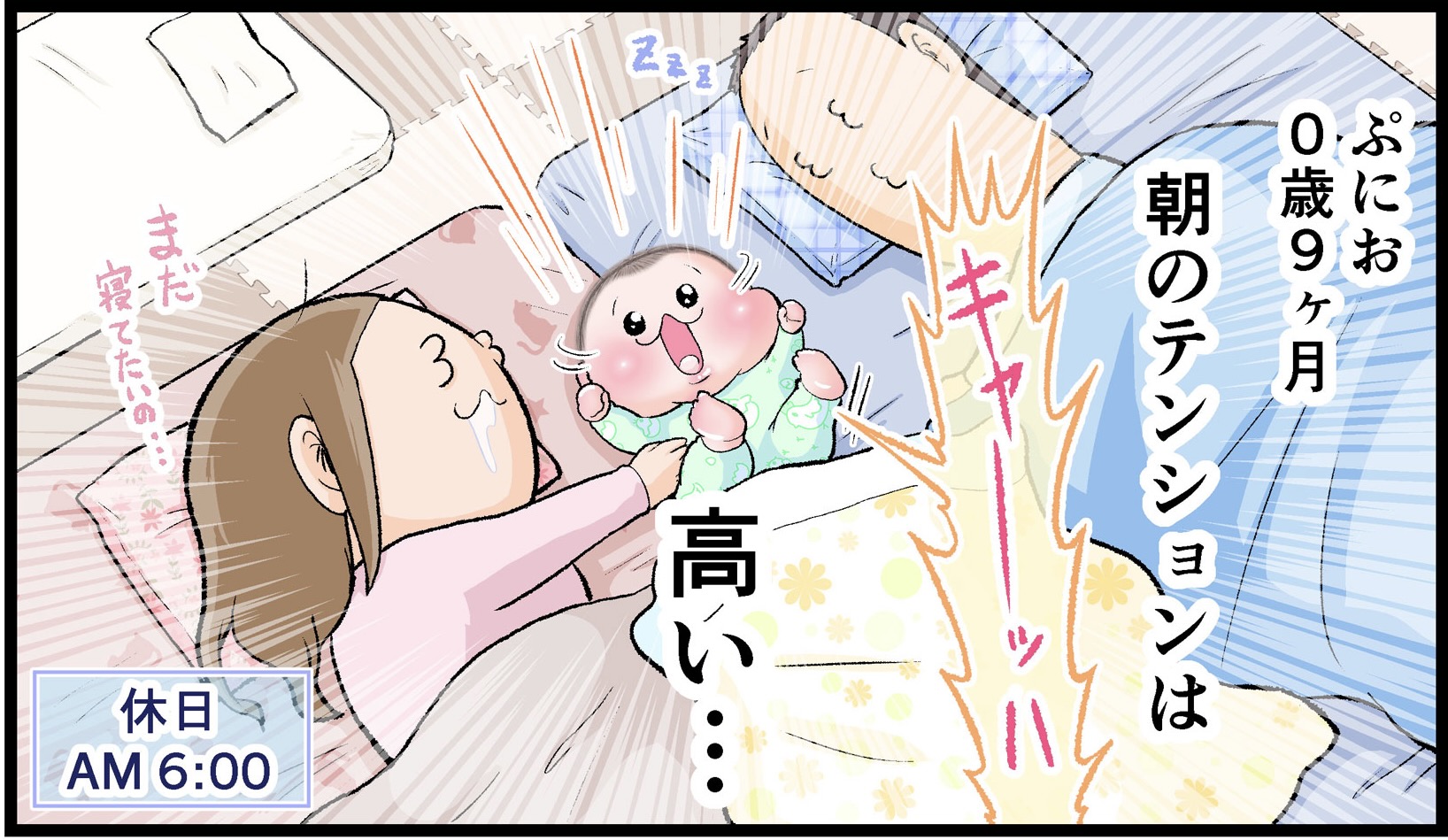 大人気にくきゅうぷにおさん(@nikukyupunio)の漫画をご紹介します。「休みの朝はゆっくり寝ていたい…」と思うママやパパも少なくないでしょう。ところが赤ちゃんにとっては休日も平日も関係ありません。にくきゅうぷにおさんの長男・ぷにおくんも休日の朝からハイテンション!さらに、強烈な〇〇〇のおまけ付きだったようです。