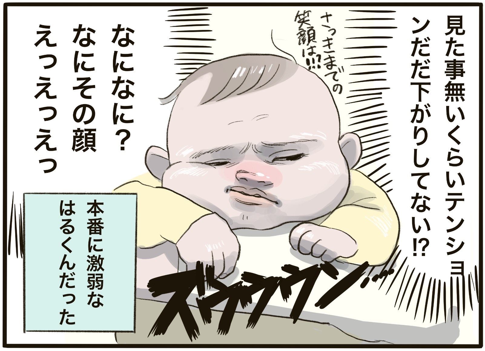 本番に激弱なことが判明したはるくんですが、いざというときに実力をだしきれないのは赤ちゃんあるあるかもしれませんね。写真館でカメラを向けられると真顔になってしまったり、健診のときだけ寝返りができなかったり…いつもの様子を知っているからこそ、もどかしい気持ちになったことがあるママも少なくないでしょう。