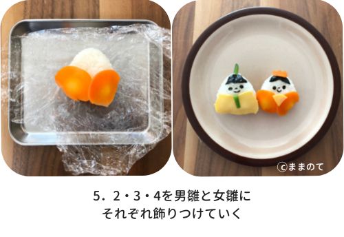 5.2・3・4を男雛と女雛にそれぞれ飾りつけていく。