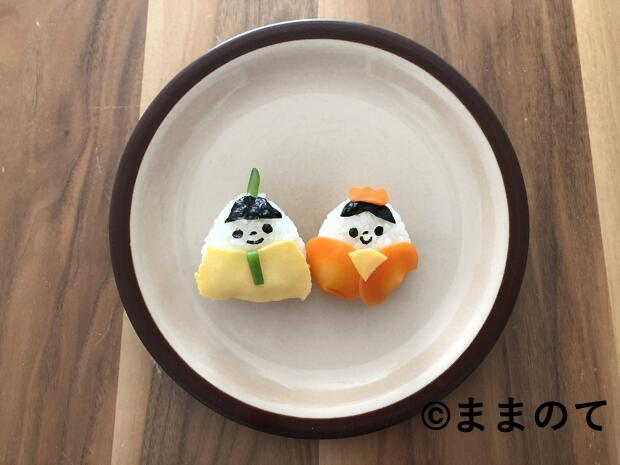 にんじんのスライスは片側半分に切り込みを入れるとご飯に巻きつけやすくなります。冠は頭に刺すように飾りつけると落ちにくいですよ。