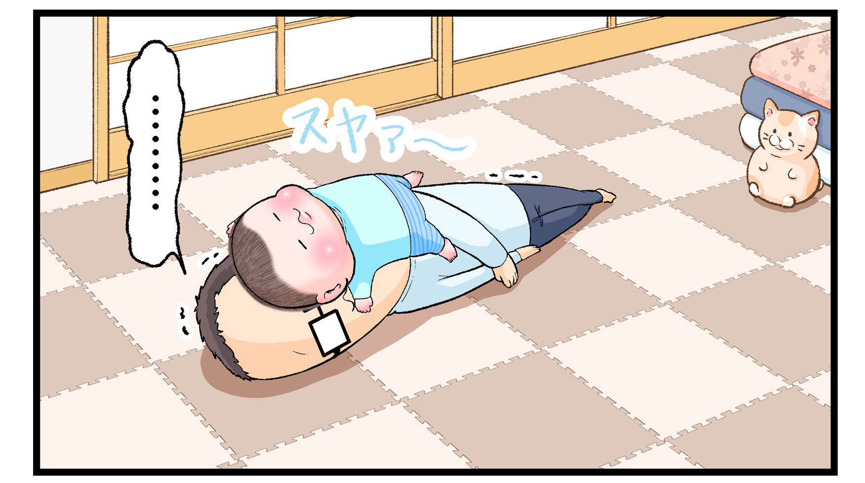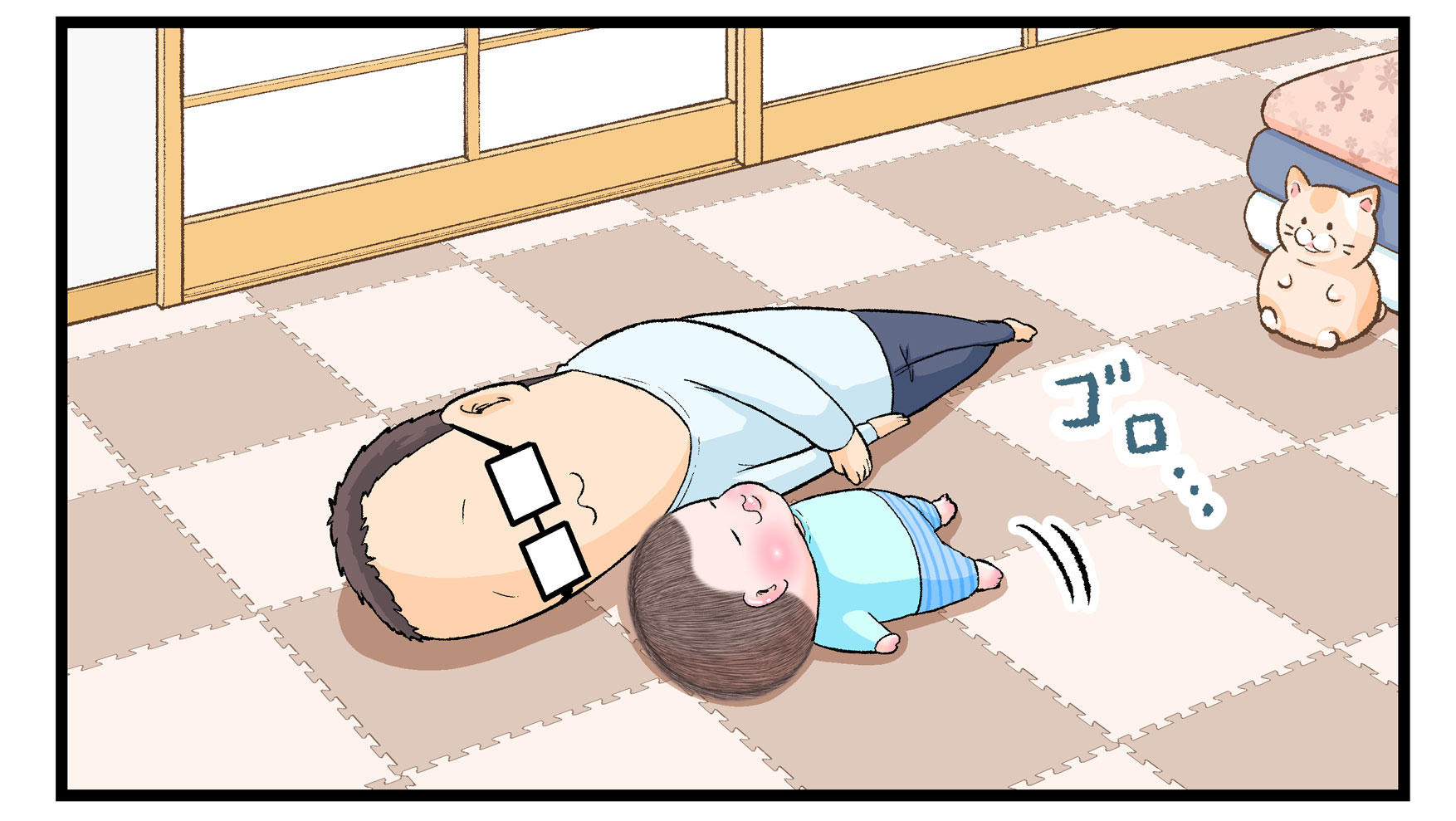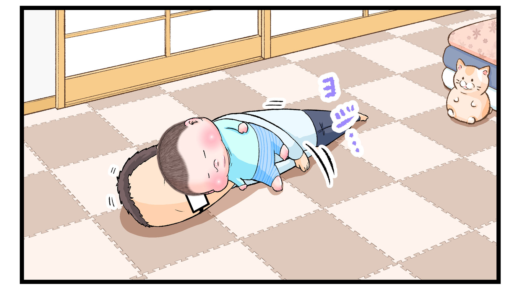 大人気にくきゅうぷにおさん(@nikukyupunio)の漫画をご紹介します。子どものお昼寝中にママやパパも一緒にお昼寝するという方もいることでしょう。子どもによっては寝心地が良い姿勢や場所があるというケースもありますよね。さて、1歳の子どもがお昼寝中にコロコロ転がって行き着いた先は…?