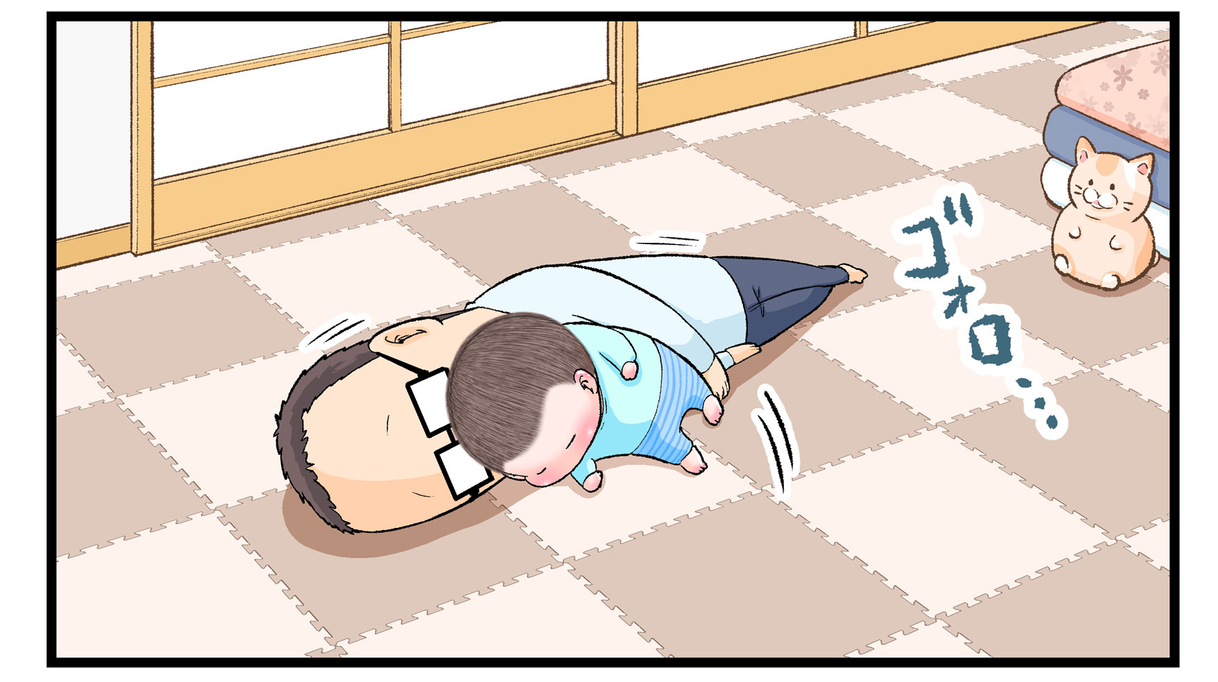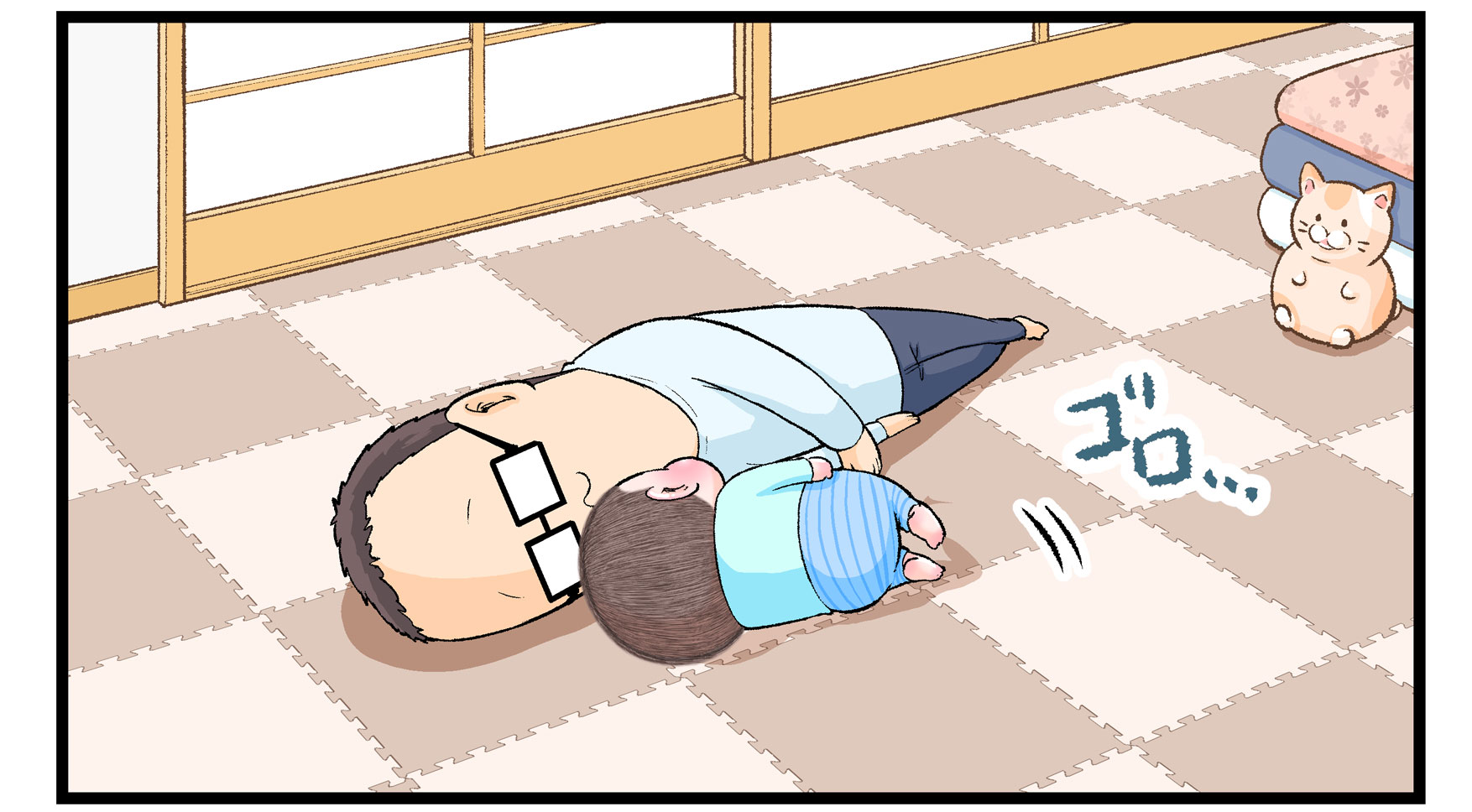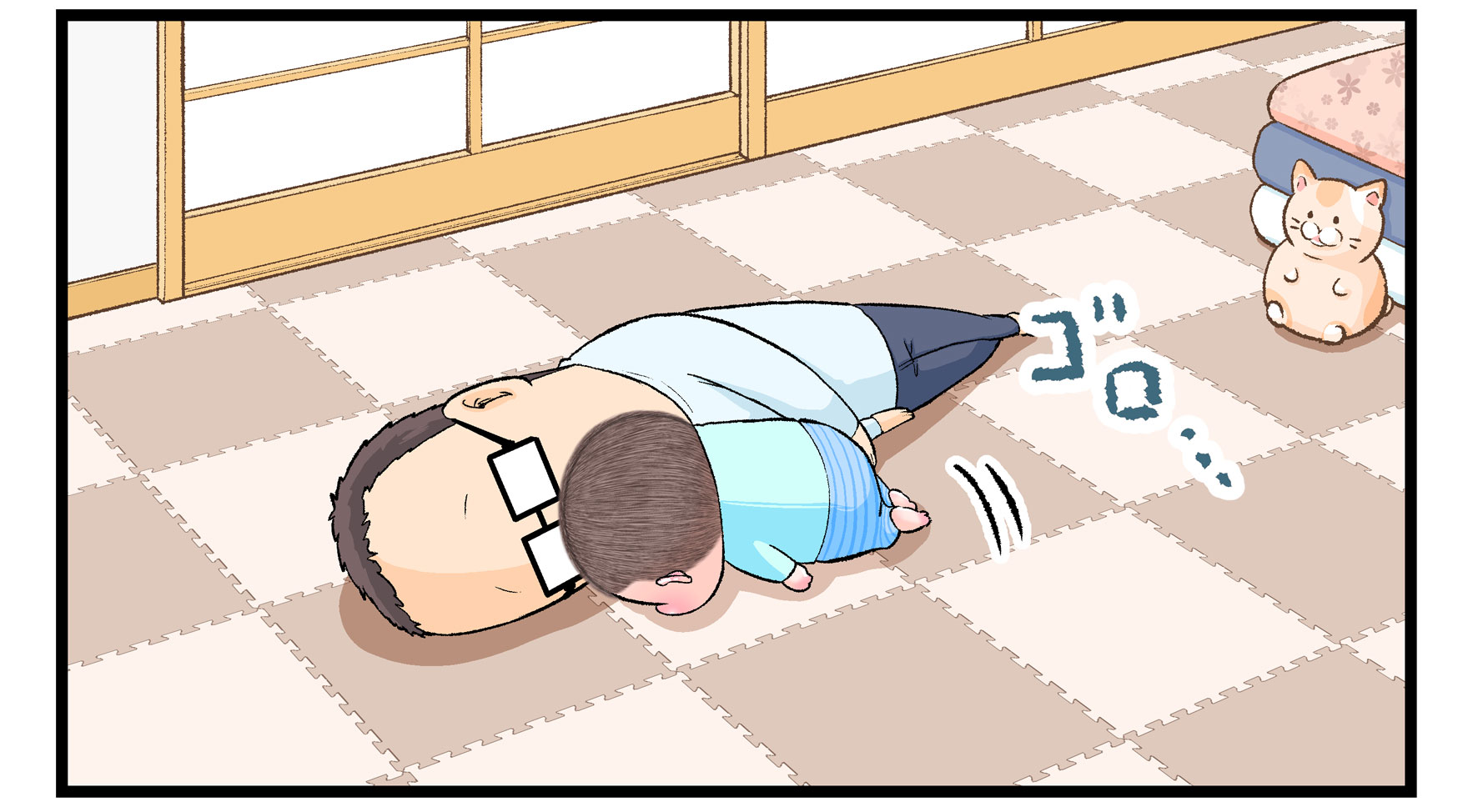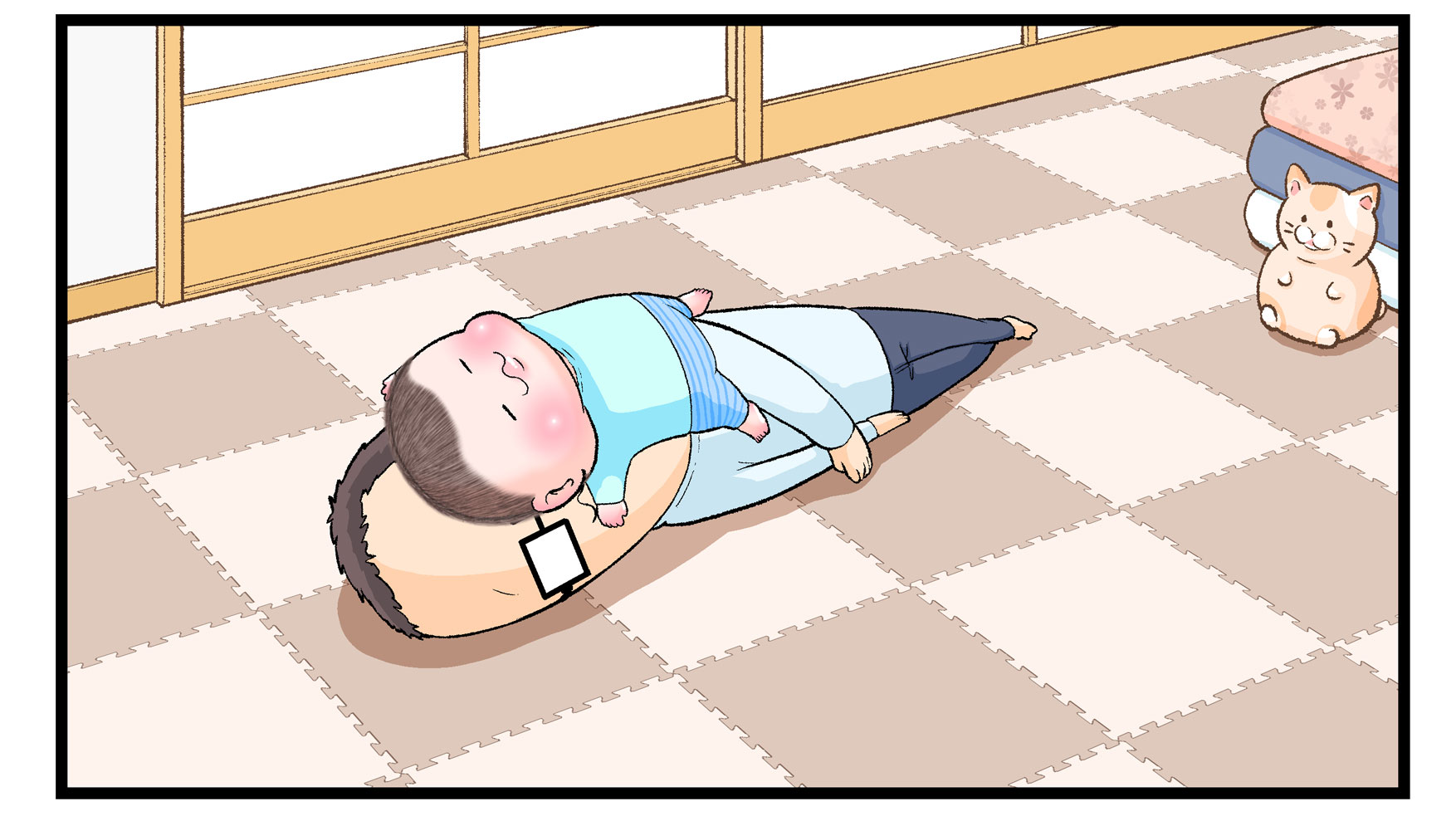 大人気にくきゅうぷにおさん(@nikukyupunio)の漫画をご紹介します。子どものお昼寝中にママやパパも一緒にお昼寝するという方もいることでしょう。子どもによっては寝心地が良い姿勢や場所があるというケースもありますよね。さて、1歳の子どもがお昼寝中にコロコロ転がって行き着いた先は…?