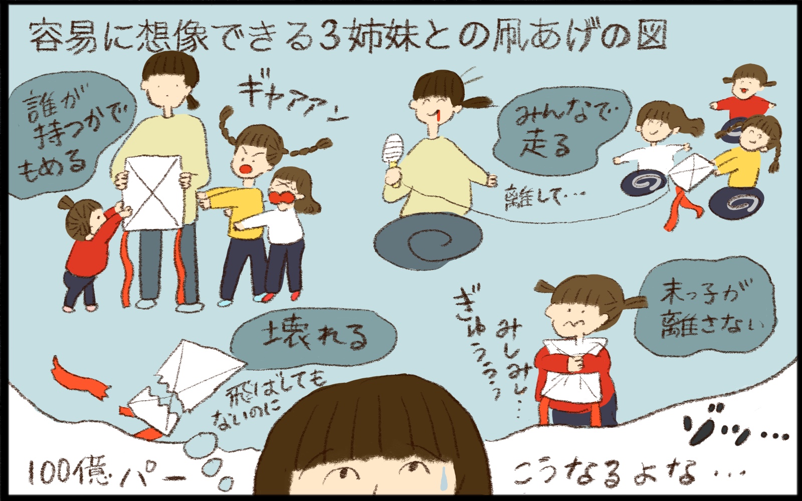ちなみに、我が家には歌詞にでてくる凧もこまもありません。お正月を楽しみにしている長女さっちゃんのためにも、せめて凧あげくらいはやってあげたい気持ちもありましたが、3姉妹と上手に凧を空にあげられるイメージができなかったので断念…。