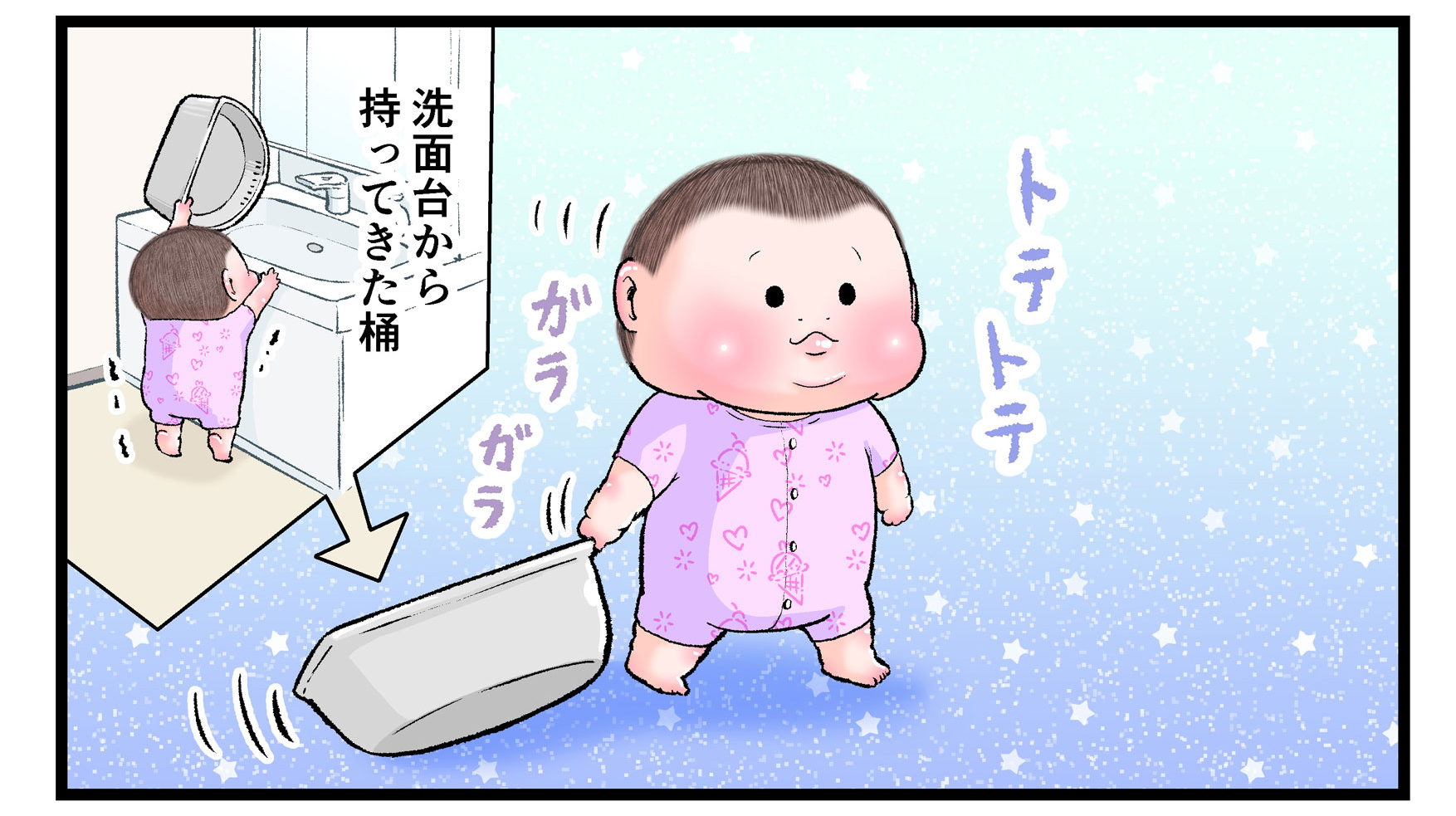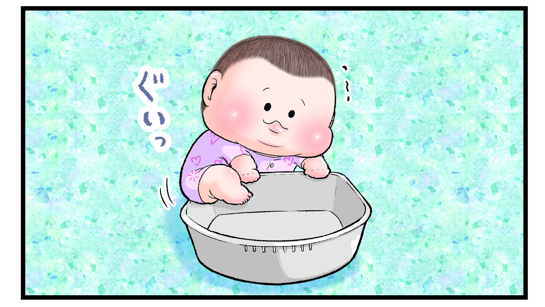 大人気にくきゅうぷにおさん(@nikukyupunio)の漫画をご紹介します。赤ちゃんは家の中にある意外なものを気に入ることがありますよね。リモコンやペットボトルなどに夢中になる姿をみたことがある方も多いかもしれません。さて、にくきゅうぷにおさんの長男・ぷにおくん(当時1歳)は洗面所からお風呂桶を持ち出して…