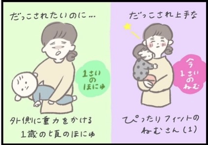 きょうだいでも抱っこのされ方に違いがあるのは面白い発見ですね。赤ちゃんを抱っこしようとしてものけぞってしまうときは横抱き、縦抱き、あぐら抱っこなど赤ちゃんの抱き方を変えてみるのもおすすめです。身体がフィットすると赤ちゃんもママも安心ですよね。