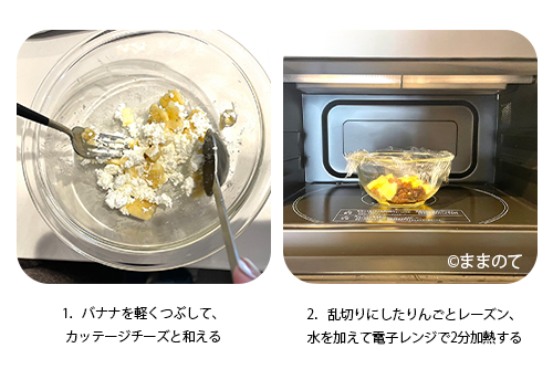 1.バナナを軽くつぶして、カッテージチーズと和える