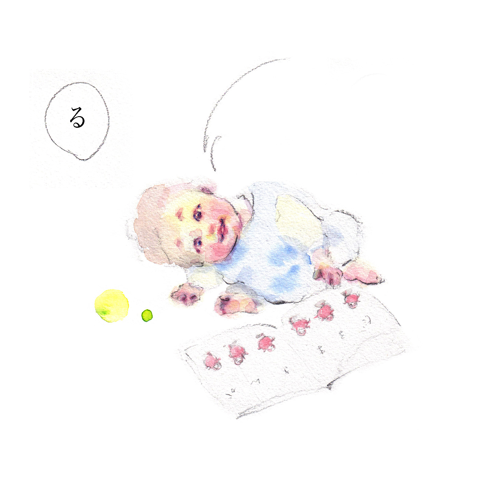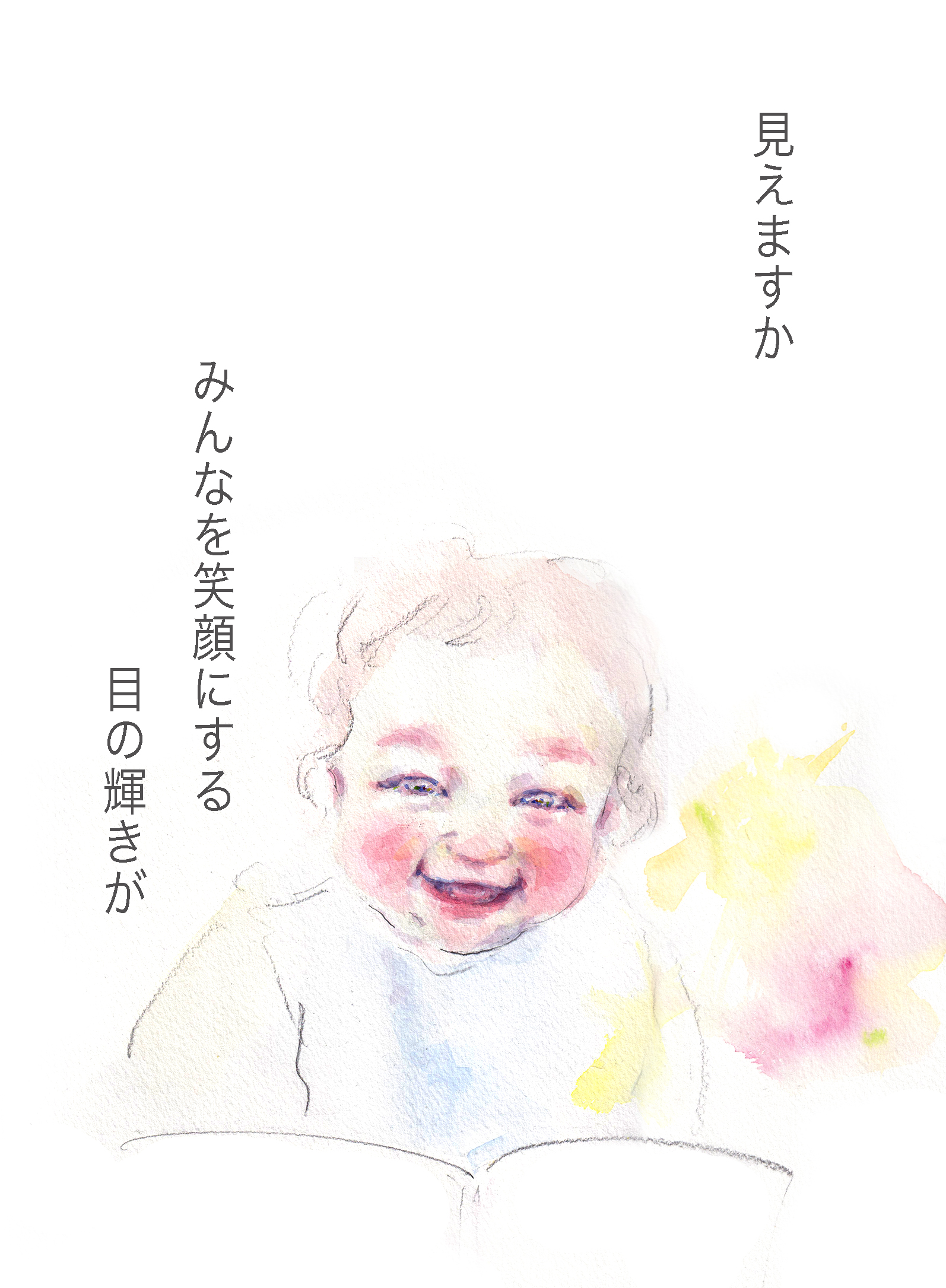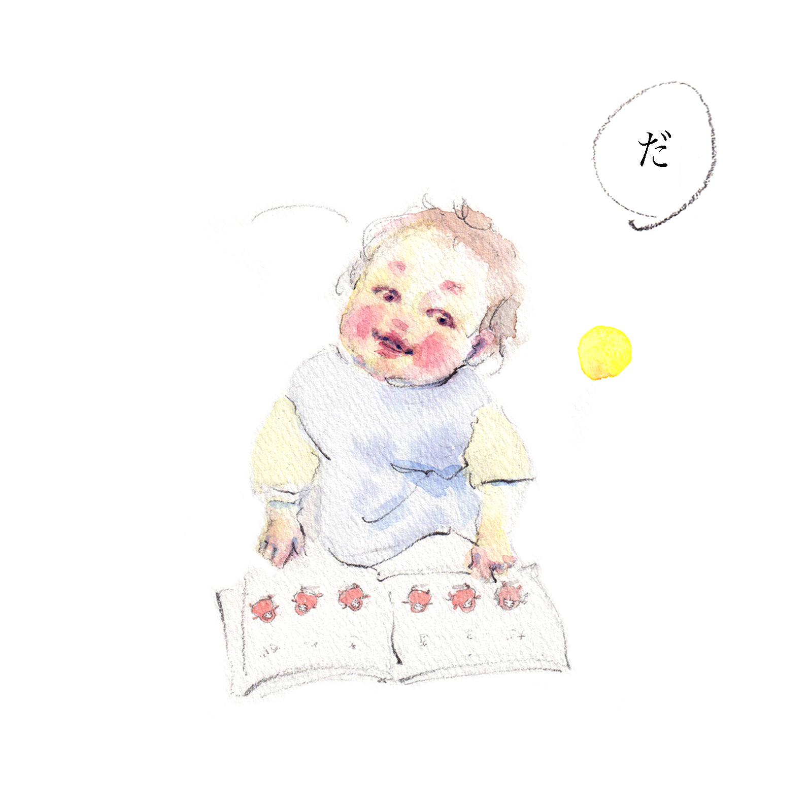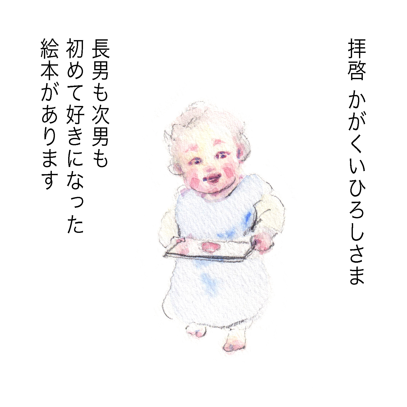 yukkoさんが描く、優しい笑顔のかがくいひろしさんのイラストを見ていると、子どもたちに向けられる想いが伝わってきて心が温かくなります。日本中の赤ちゃんの笑顔が天国へと届きますように…。