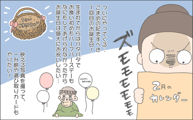 育児マンガ家おかめ(@omame_okame)さんの日常の出来事や奮闘をマンガでお届けします。第二子の長女こまめちゃんが、ついに1歳を迎えました。バタバタな育児で過ぎてしまった0歳児…だからこそ、1歳になるお誕生日には最高のものをやりたい!と意気込むおかめさん。さてどのようなお誕生日会になったでしょうか?