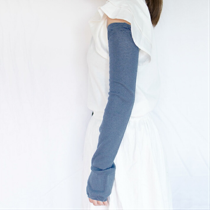 こちらのリネンコットンアームカバーは、涼感があるリネンとやわらかなコットンをブレンドしてつくられました。熱がこもりにくく汗をすばやく吸収・発散してくれます。コンパクトで持ち運びがしやすく、バッグに入れておいても邪魔になりません。