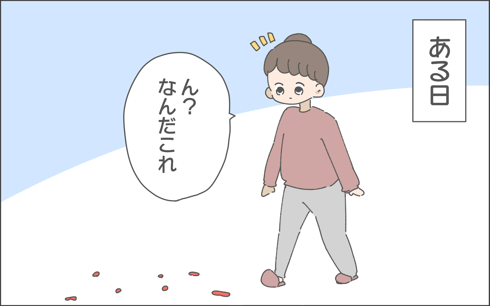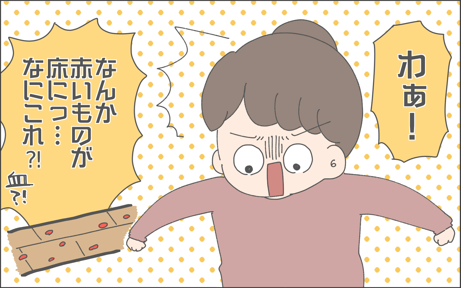 育児マンガ家おかめ(@omame_okame)さんの日常の出来事や奮闘をマンガでお届けします。ある日ふと床にポツポツと落ちていた赤いもの。それはまさかのアレではないか?!その瞬間、子どもに怪我でもあったのではと焦ったおかめさん。そしてその落ちていた赤いものの正体とは…?