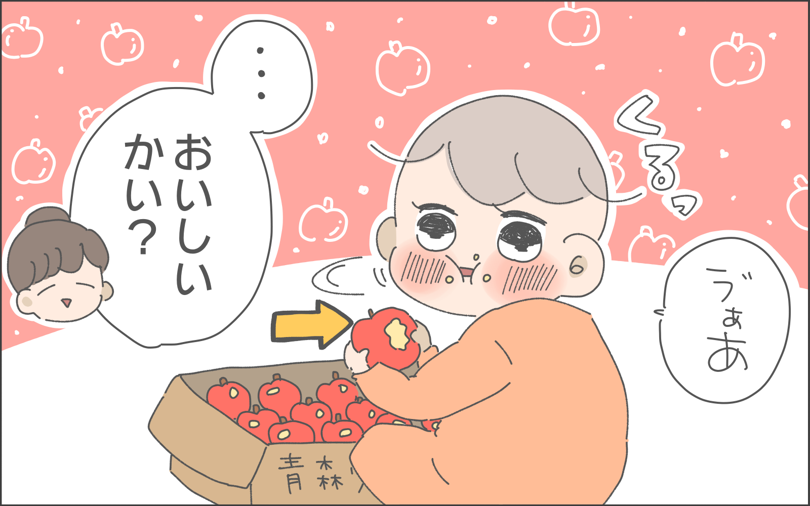 最後は、りんごを美味しそうに頬張るこまめちゃんになんだか癒された、ほっこりなエピソードでした♪