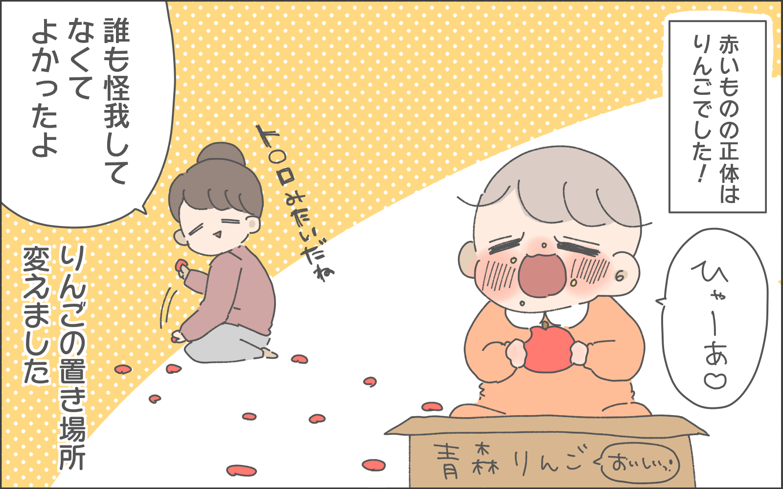 子育ては常に危険と隣り合わせで、身の回りに危険なものはないか、目を離したその間に何かあるのではないかなどと、いつも気にしているものです。最初は恐怖と焦りでいっぱいでしたが、その心配とは裏腹になんでもなかったこと、本当に安心しましたね。