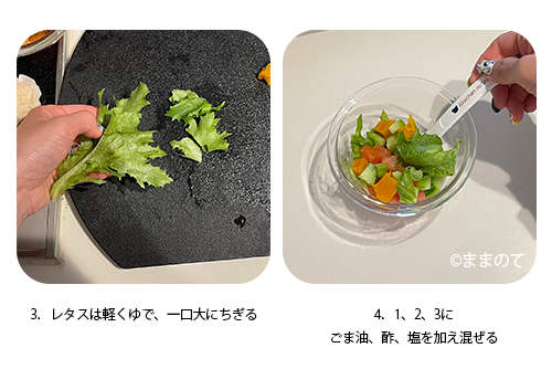 4.1、2、3にごま油、酢、塩を加え混ぜる