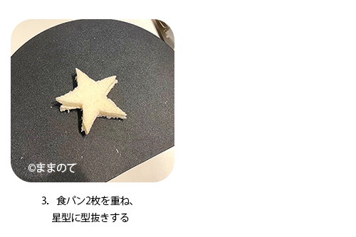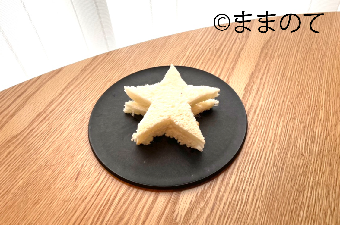 星形に型抜きしたあと、パンの端を指で押さえてくっつけると形が崩れにくくなります。離乳食完了期には、食パンを軽くトースターで焼いてもおいしいですよ。
