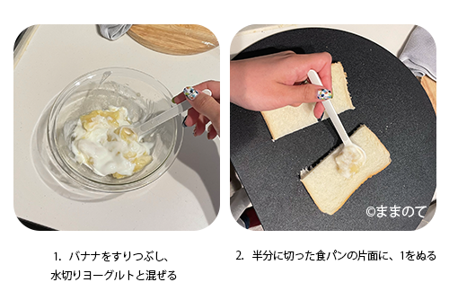 1.バナナをすりつぶし、水切りヨーグルトと混ぜる