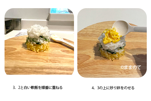 軟飯に混ぜるペーストは今回使用したにんじんやほうれん草のほか、コーンやトマトにしても良いでしょう。鮮やかな色の野菜ペーストを使用すると、彩りも良くなりますよ。