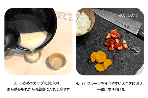 3.小さめのカップに2を入れ、あら熱が取れたら冷蔵庫に入れて冷やす