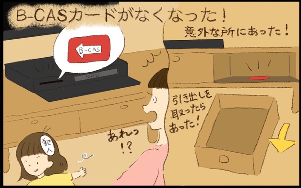 B-CASカードとは地上デジタル放送を観るために必須なカードですが、テレビの方ではなく録画するためのレコーダーに入っていたカードをしーちゃんが抜き取りどこかに隠してしまったことがありました。