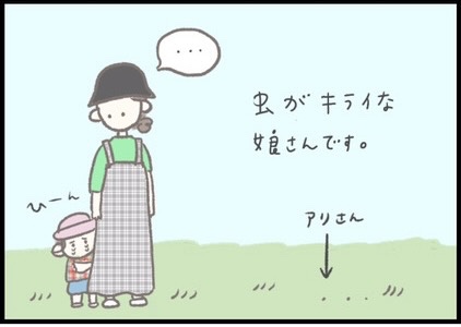 子どもは保育園や幼稚園でも屋外の活動が多いですよね。ママとのお散歩で公園で遊ぶこともあるでしょう。虫や生き物を怖がりすぎて外遊びが嫌いになってしまうのではないかと心配するママも少なくないようです。そんなときは、つぶみさんのように「怖くないよ、大丈夫」と優しく声をかけてあげてはいかがでしょうか。図鑑や絵本を使って虫や生き物に慣れさせるのもおすすめですよ。