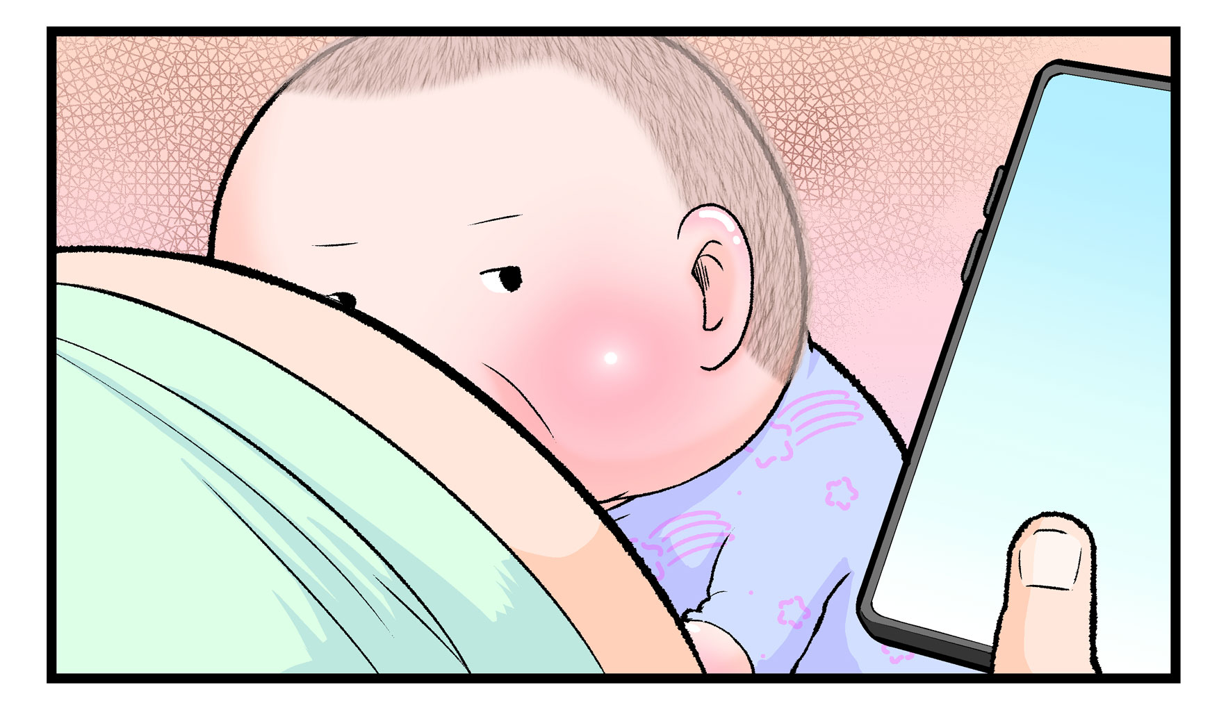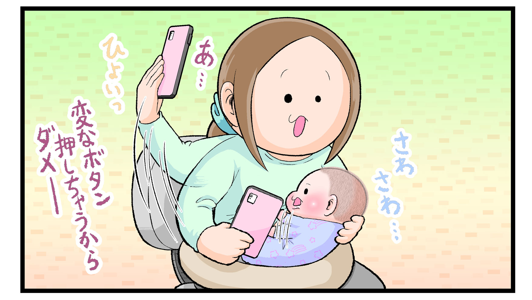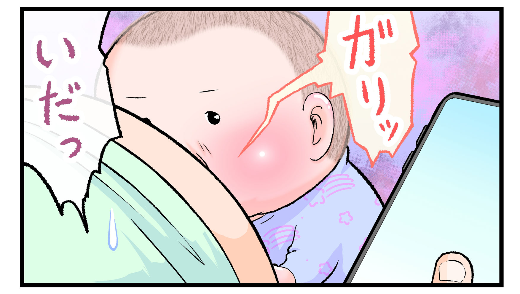 スマホに触らせてもらえなかったぷにおくん(当時4ヶ月)は、タイミングよくママの乳首をガリッ!生後4ヶ月にして無言でママへ不満の気持ちを伝えていたのでしょうか。まさかの反撃に、にくきゅうぷにおさんは「いだっ!」と思わず声をだしてしまうほどダメージを受けたようですね。