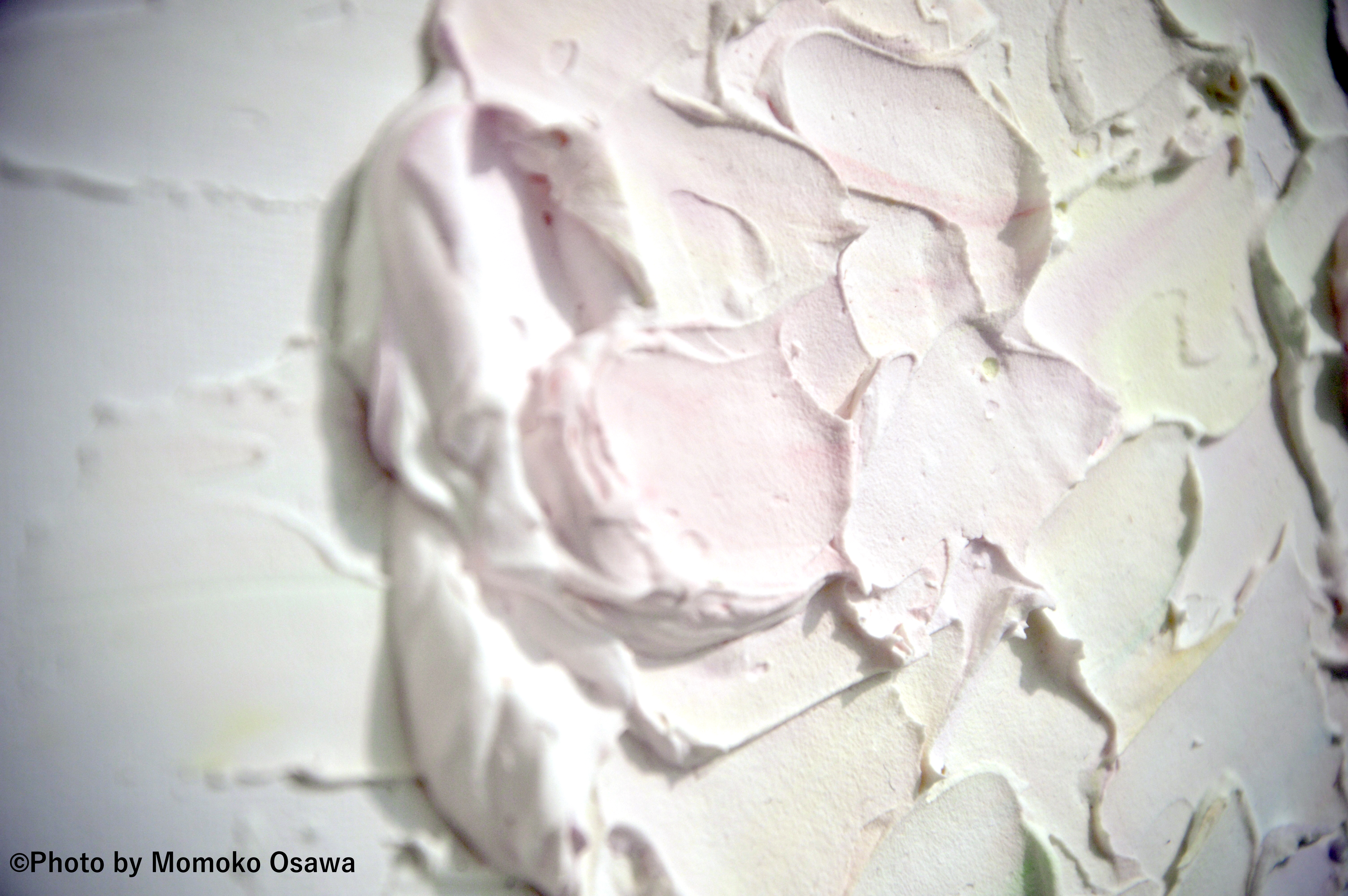 yukkoさんが感じた、赤ちゃんのほっぺの感触を表現した作品です。どのように作品を創造したかyukkoさんに尋ねたところ、アクリル絵の具で表現されたとのこと。「抽象的ですが…」とyukkoさんのお言葉がありましたが、編集部員の目には赤ちゃんのほっぺたのやわらかさやその情景がひしひしと伝わってきました。