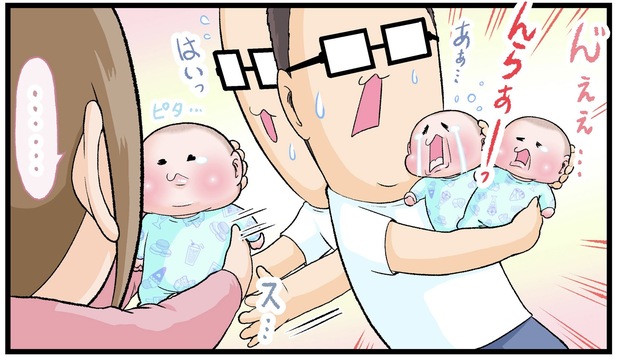 大人気にくきゅうぷにおさん(@nikukyupunio)の漫画をご紹介します。泣いている赤ちゃんを抱っこしてあげると泣き止むことが多いですよね。赤ちゃんとの信頼関係を育むためにも抱っこはとても大切ですが、身近な家族でも抱っこをする人によって赤ちゃんの反応に違いがあるようです。さて、にくきゅうぷにおさんの場合は…?